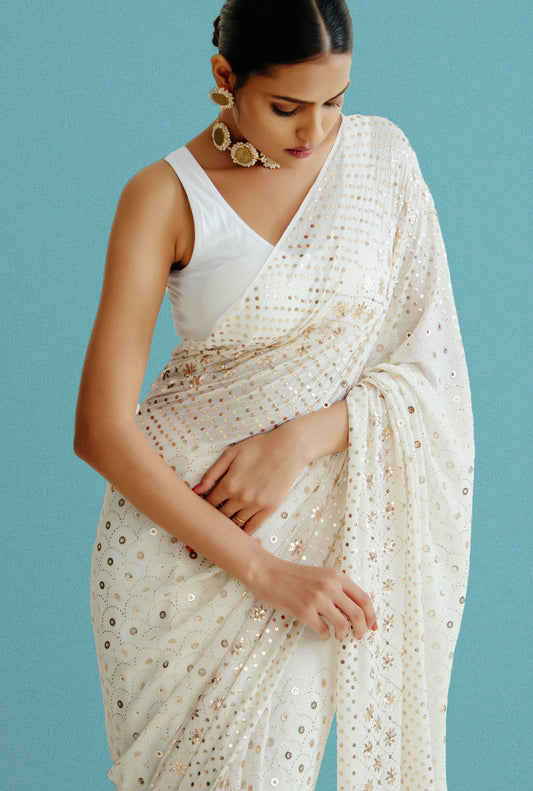 Dyeable Saree In Pure Georgette With Mukaish Work