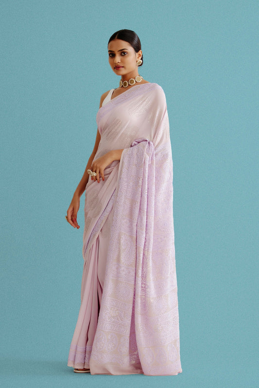 Pure Georgette Saree With Mukaish And Thread Work