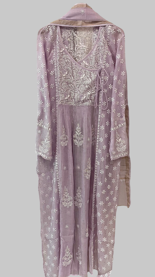 Pure Mul Chanderi Semi Stitched Angarkha Kurta And Dupatta Set