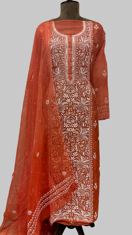 Pure Organza Semi-stitched Kurta And Dupatta Set