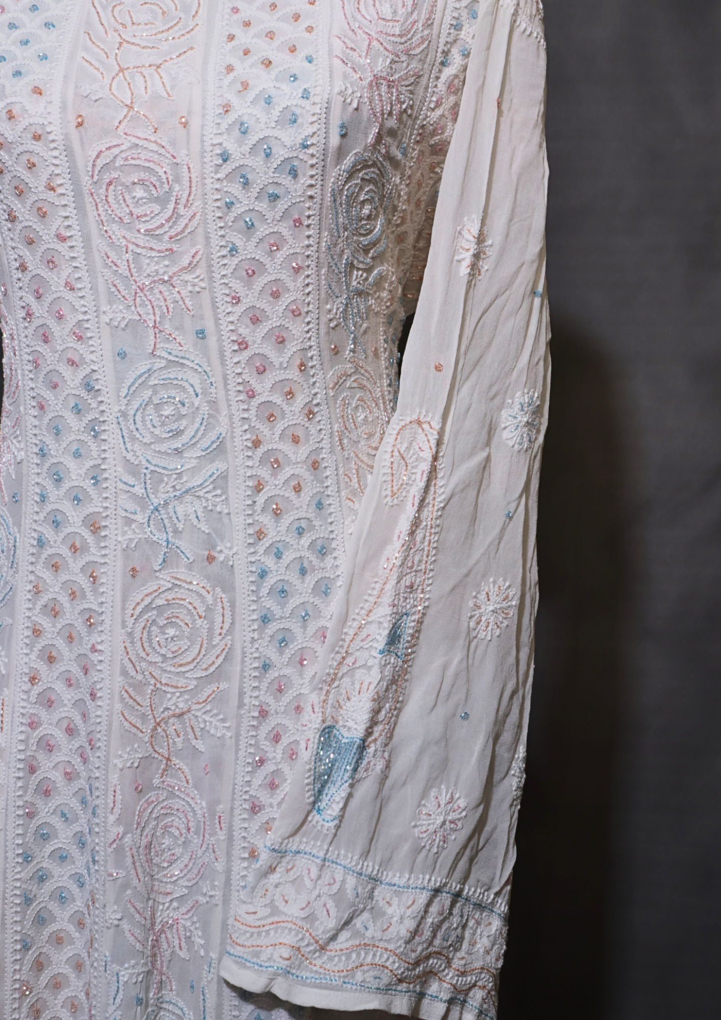 Pure Georgette Anarkali Dress With Thread And Assembled Work
