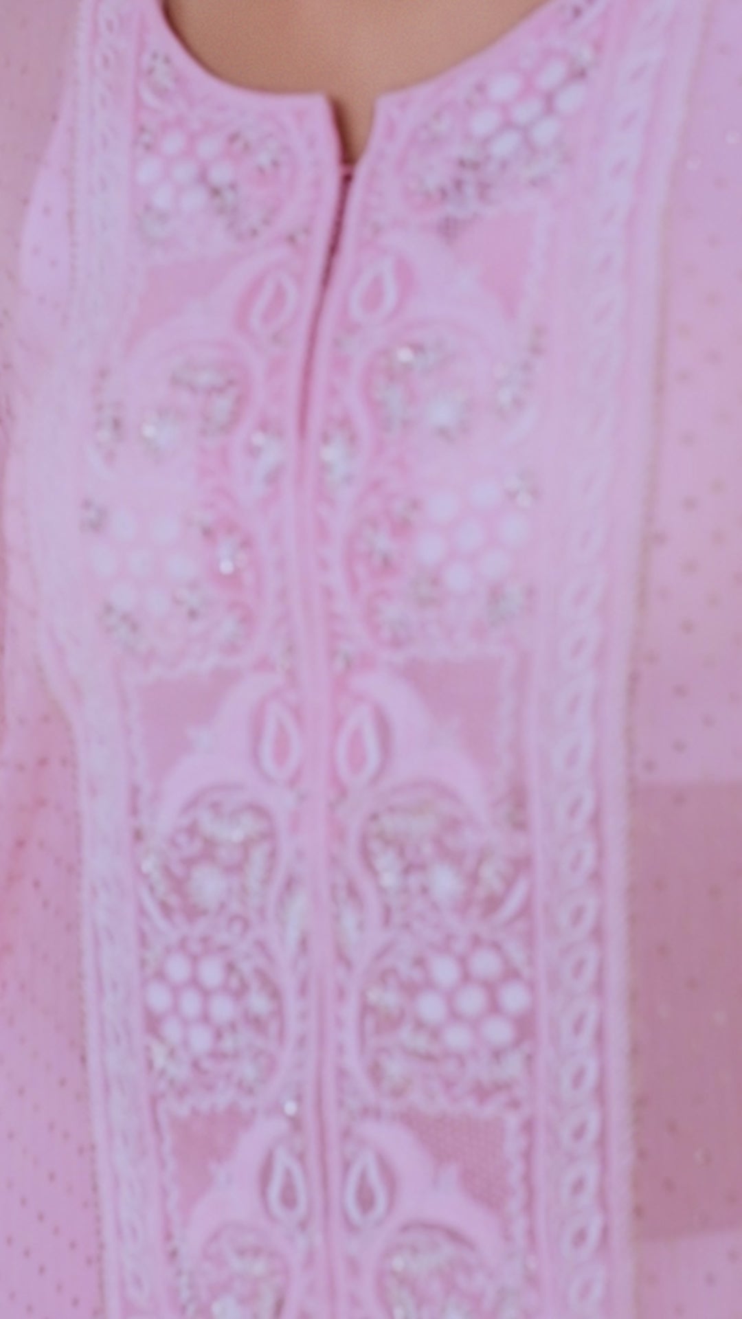 Pink Pure Georgette Kaftan With Chickankari And Mukaish Work