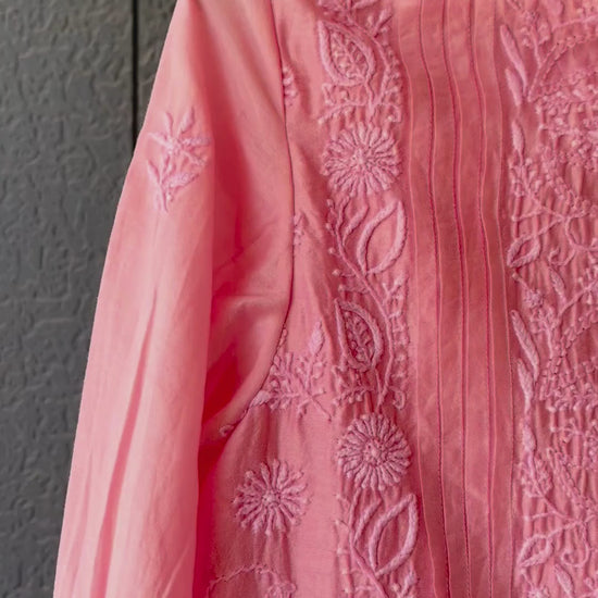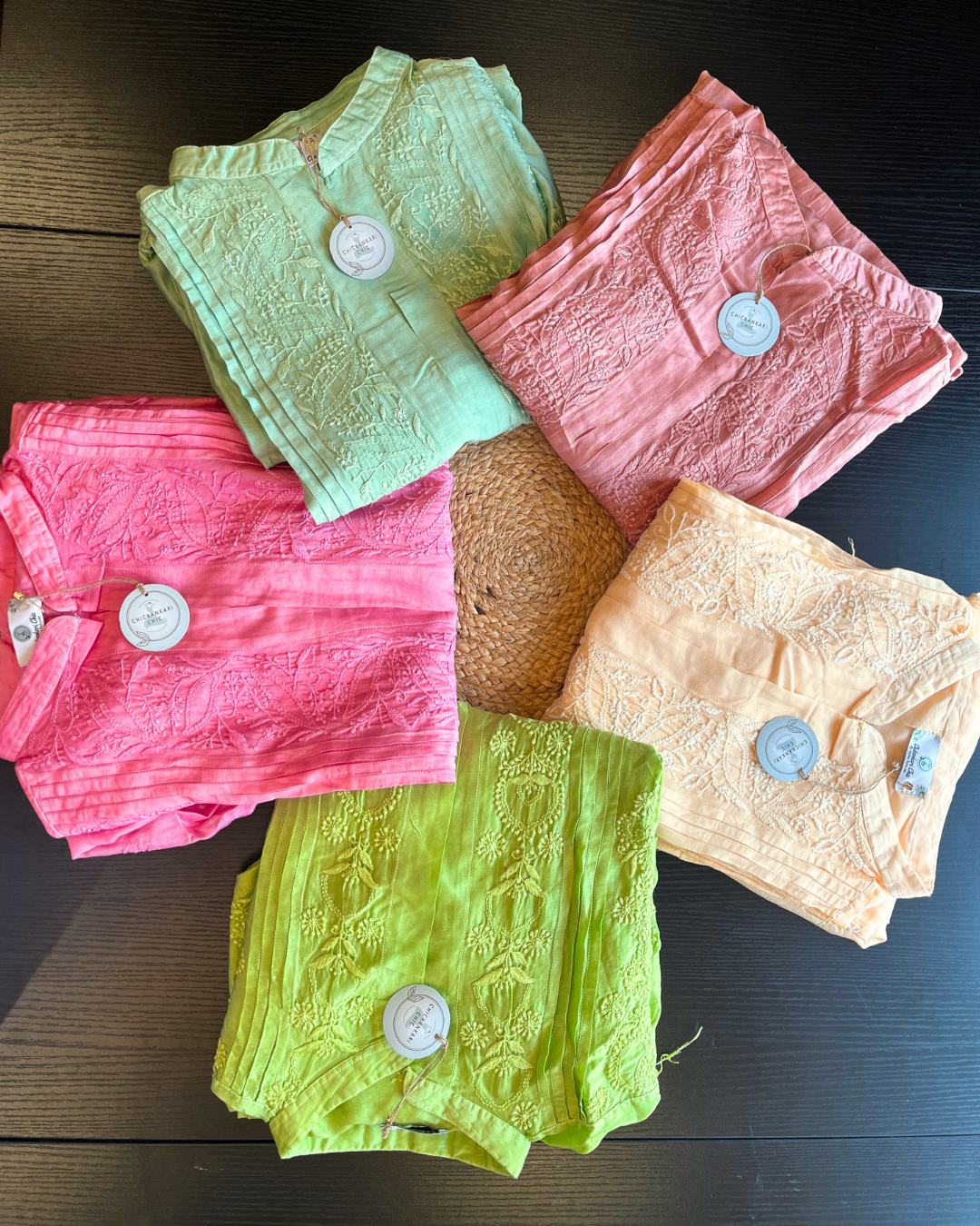 The tunic itself is adorned with exquisite chikankari thread work, a testament to meticulous artistry that elevates its aesthetic to a masterpiece. This intricate detailing adds an ethereal dimension, ensuring you captivate attention at any occasion.