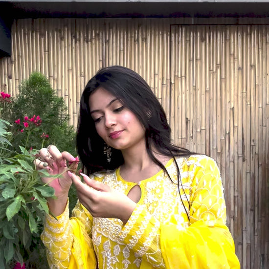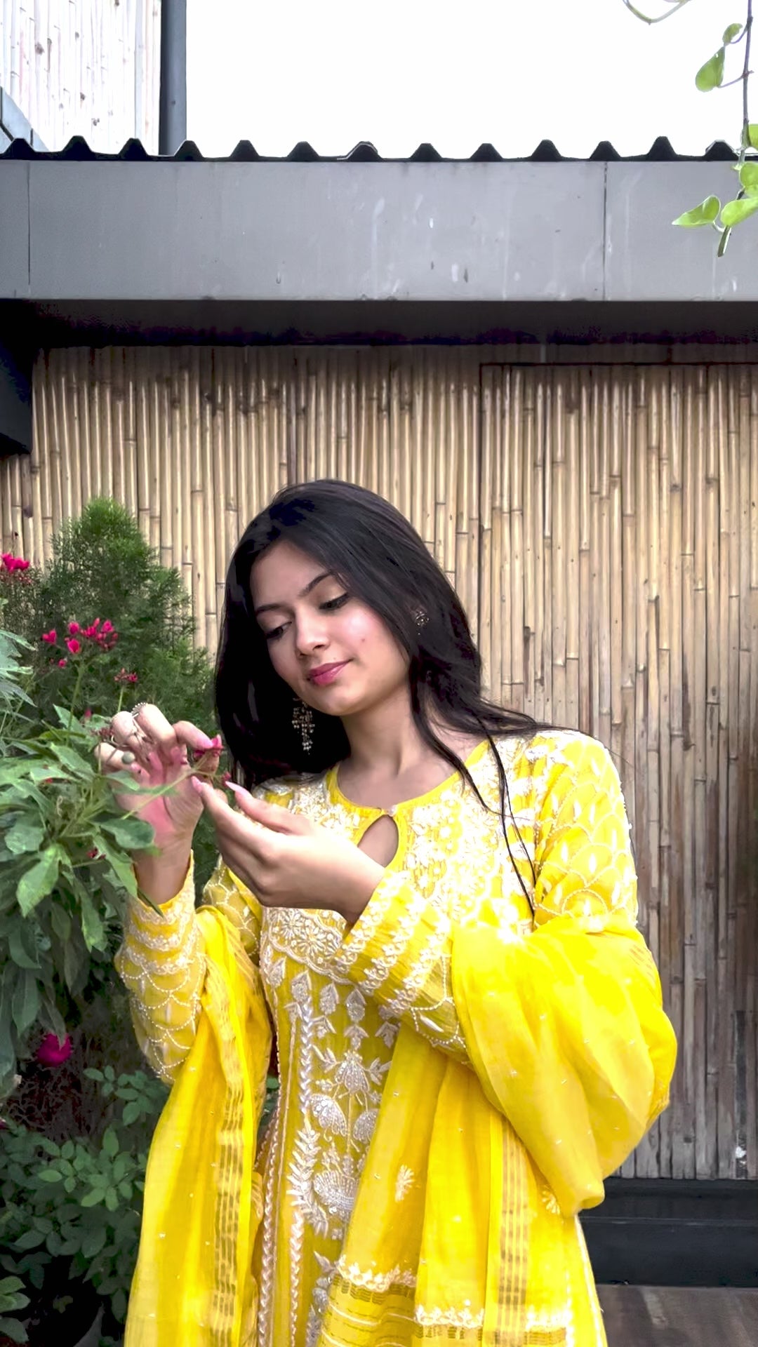 The Intricate assembled work Adorns The Anarkali and Dupatta, Showcasing Impeccable Craftsmanship And Adding An Elegant Touch To Your Ensemble. The Soothing Shade Yellow color will Complements A Wide Range Of Skin Tones, Making It A Versatile Choice For Various Occasions.